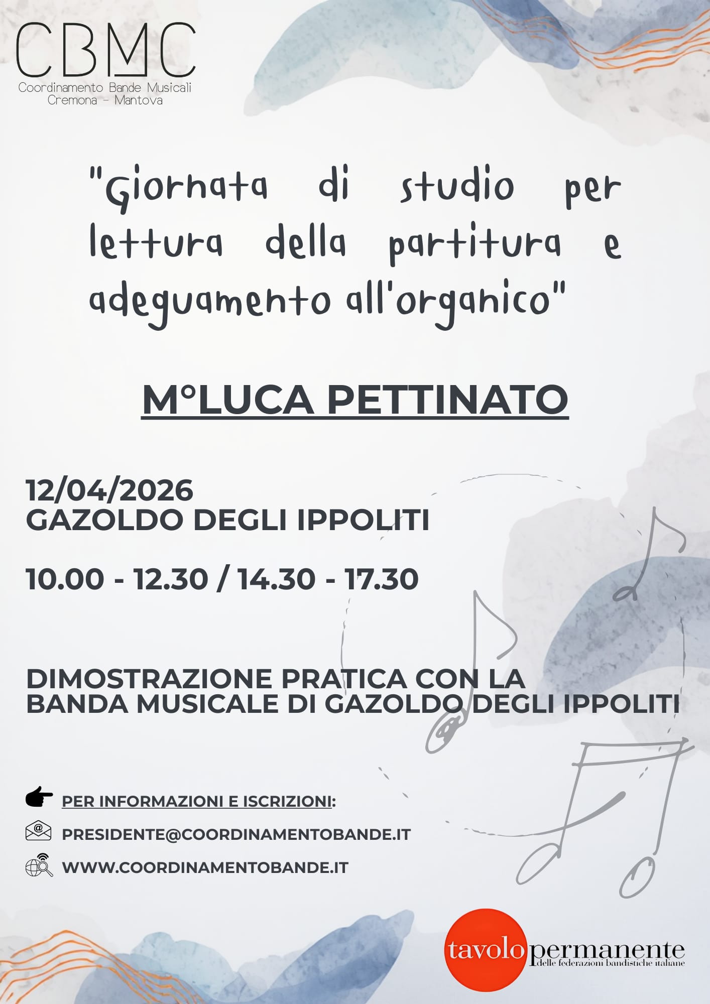 Quota di partecipazione € 50 (comprensivo di partitura del brano su cui si lavorerà)